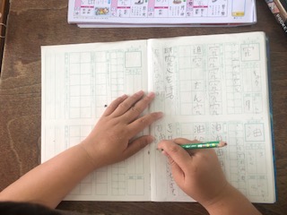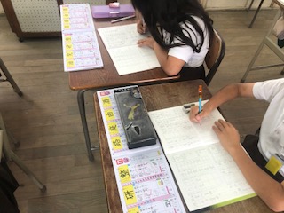 落ち着いて、しっかりと新しく習う漢字を学習しています。