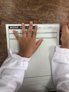 種をまいて育てているあさがおがだんだんと大きく育ってきています。観察したことをカードにかいています。