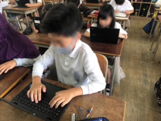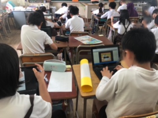 一人一台端末を使って学習しています。かなり扱いに慣れています。
