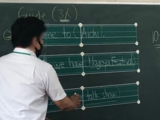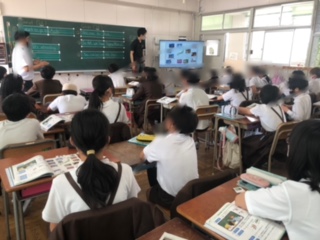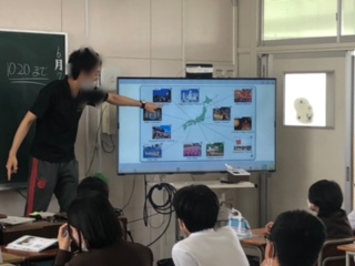 5年生と6年生の外国語は他校の教員(写真中)とネイティブの方(写真下)が授業されています。