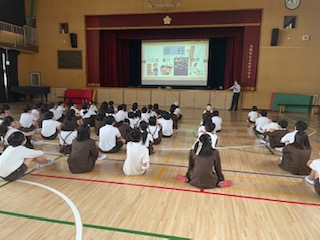 今日は警察関係の方々に来ていただき、非行防止教室をしました。