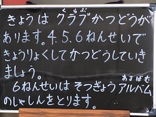 今日は6時間目に4、5、6年生のクラブ活動があります。