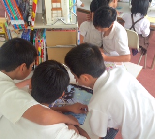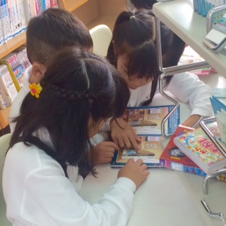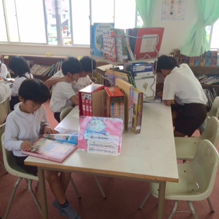 今日の図書館開放の様子です。新しい本のコーナーには、子どもたちがたくさん集まってきます。