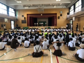講堂で開会式をして、なかよしフェスティバルが始まりました。