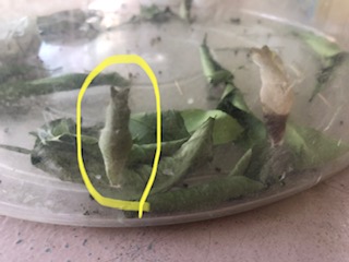 幼虫から育てたアゲハチョウがさなぎになっています。