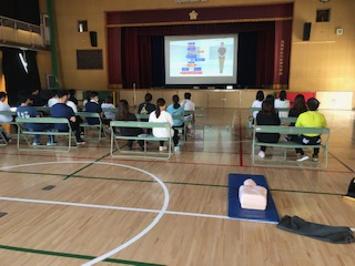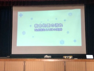 本日は2時より西淀川消防署の方による救急救命講習を教職員が受けました。はじめに80分のDVDを視聴しました。
