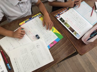 子どもたちはノートにしっかりと考えたことを書いていました。
