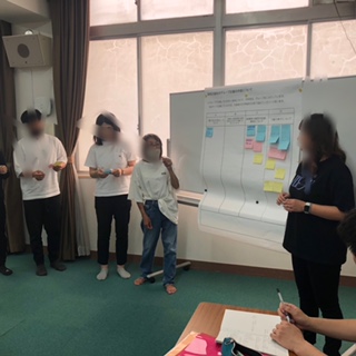 写真下は、教育センターの指導担当(黄色矢印)による指導講評です。
