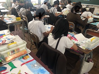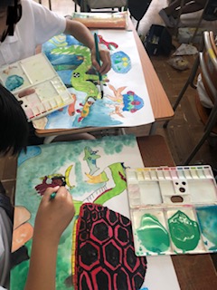 6年生は絵の具でいろいろな色を使ってていねいに絵を描いていました。