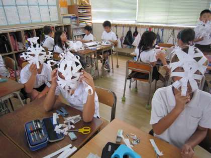 作りながら、うれしそうにかぶっている様子から、楽しく取り組めていることが伝わってきます。