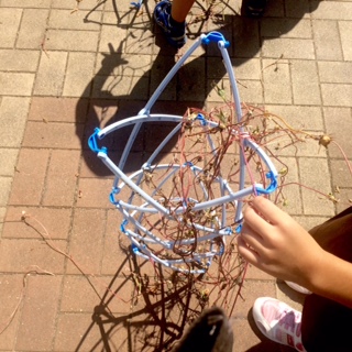 学習はこれでおしまいでなく、茎を使ってリースを作ります。
