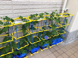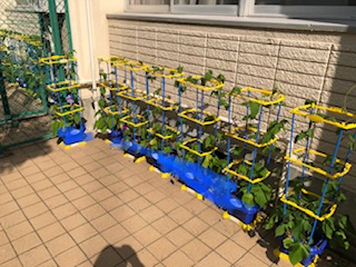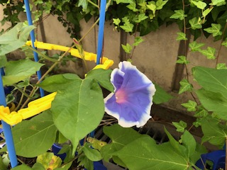 1年生が育てているあさがおが咲き始めました。これからいっぱい花が咲いていきますね。