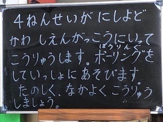 今日は4年生が西淀川支援学校に交流にいきます。ボーリングをいっしょに楽しみながら交流します。
