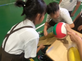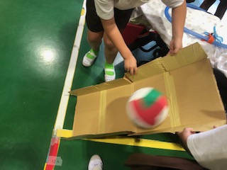 大和田小学校の4年生が考えたボーリングゲームをしました。