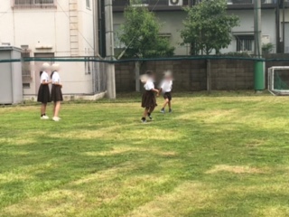 昨日、整備された芝生で子どもたちがのびのびと遊んでいます。
