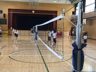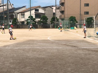 今日は1学期最後のクラブ活動です。運動のクラブが運動場、体育館でサッカーとバレーボールを楽しんでいます。