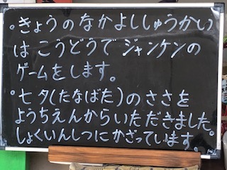 七夕の笹を大和田幼稚園からいただきました。職員室前に飾っています。