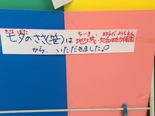 大和田幼稚園から七夕の笹をいただきました。ありがとうございます。
