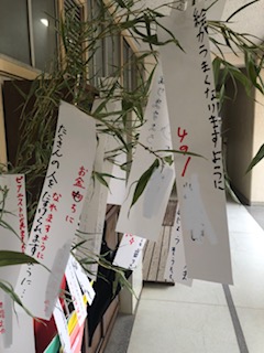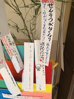 いろいろな願い事が書かれています。教頭先生の平和への思いも、つるされていました。