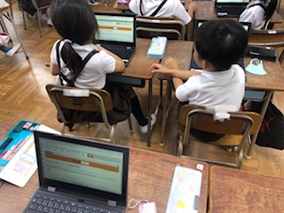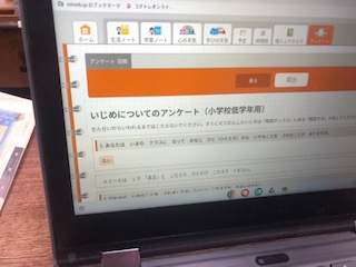 いじめについてのアンケートをとっています。パソコンでしています。紙で行うこともあります。