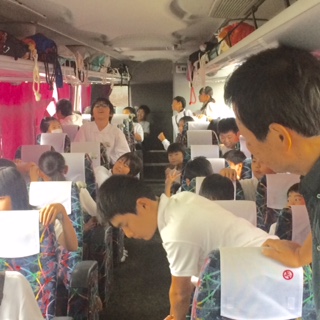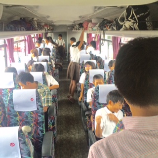 目的地に向かって、修学旅行バスは順調に進んでいます。