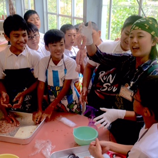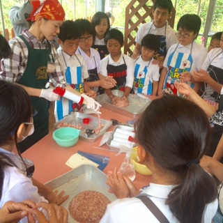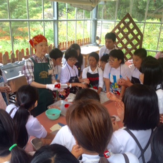 いよいよ腸詰めです。インストラクターさんのお話しを聞きます。