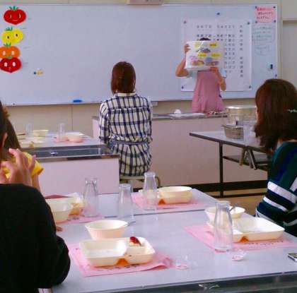 クイズや紙芝居のような形式で、和食の優れた部分(新鮮な食材と調和しており、年中行事との関わりもある。美しく季節を表現し、栄養バランスにも優れている)も教えていただきました。