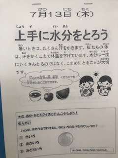 今日の給食カレンダーには、熱中症予防につながる水分補給についても載っていました。