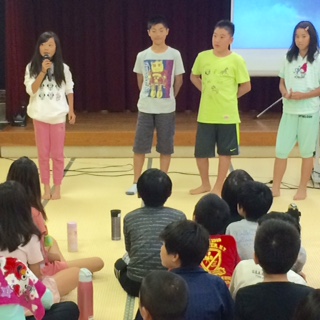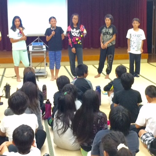 班長さんがみんなの前に出て、班ごとに話し合った内容を発表しました。