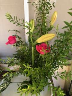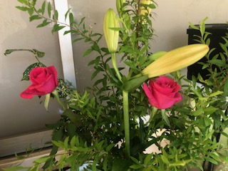 校長室の前に生涯学習の皆様が活けられたお花が飾ってありました。