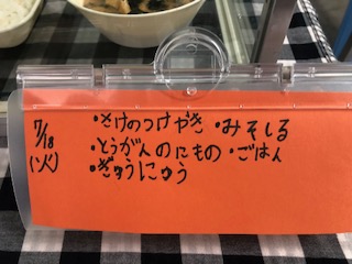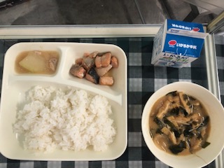 冬瓜(とうがん)、鮭(さけ)がでました。(皿の小分け部分)