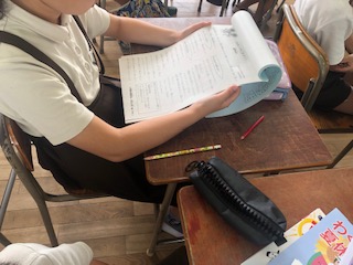夏休みのつづりには宿題のプリントも綴じられています。