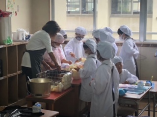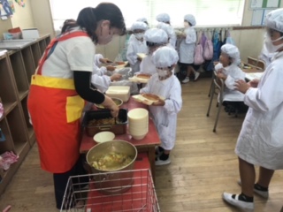 写真は1年生です。配膳がとてもうまくなってきています。