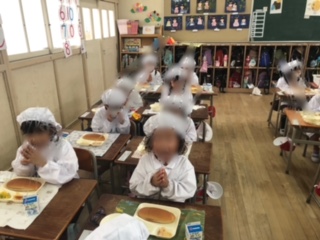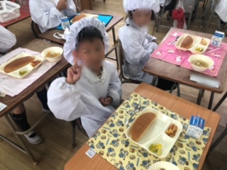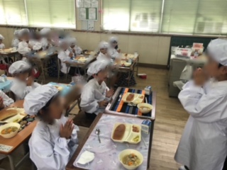 1学期最後の給食です。いただきますの後、楽しく、おいしく食べていました。