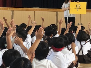 安全な夏休みの生活のために大事なことを漢字を使って話しました。