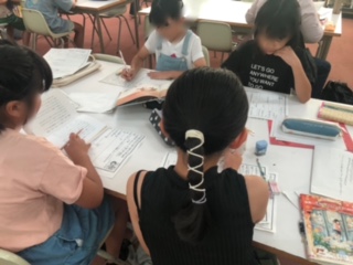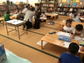 子どもたちは先週苅部先生に指導していただいたプリントをもとに感想文に一生懸命取り組んでいました。