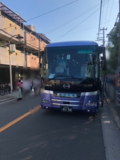 参加予定の子どもたち全員が2台のバスに乗って7時36分に出発しました。