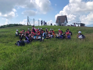山登りは途中で子どもたちの体調を見ながら進めました。無理しないように途中から教員引率のもと、ふもとへ降りる児童もいました。