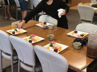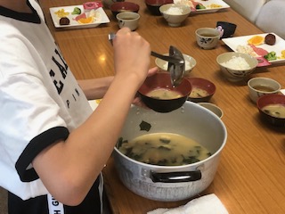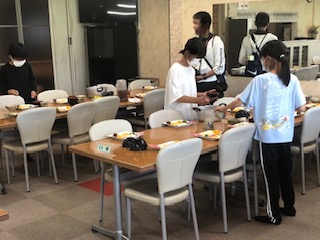 食事係は教員の指示なしで準備ができるようになっています。高学年の力量ですね。