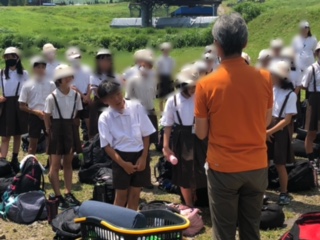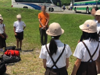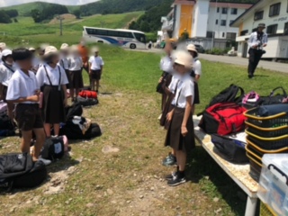 宿舎の方にお礼をきちんと伝えていました。また、宿舎の方のお話もしっかりと聞いていました。