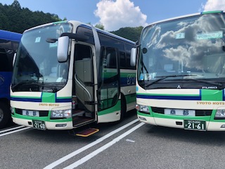 まほろばで1回目の休憩を取りました。写真は帰路のバスです。