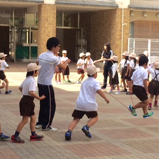 2時間目後の休み時間の様子です。心地よい季節です。運動で思いっきり身体を動かしています。