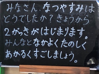 今日から2学期です。子どもたちはどのような夏休みを過ごしたのか楽しみです。