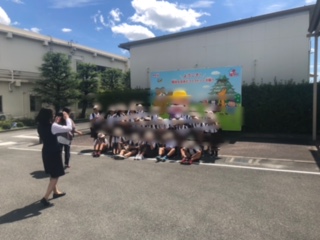 工場見学の後、外でクラスごとに記念写真を撮りました。