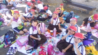 ボーリング場から歩いて公園に着きました!おうちの人の心のこもったお弁当であり、たくさん動いてお腹がすいていたこともあるため、お弁当をおいしくいただきました。