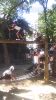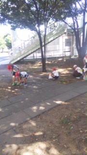 その後は、どんぐりを拾ったり、遊具で遊んだりしながら楽しんでいます。