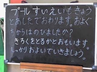 今日と明日でプール水泳も終わります。学年で1回ずつあると思います。泳ぐ力を伸ばしていきましょう。