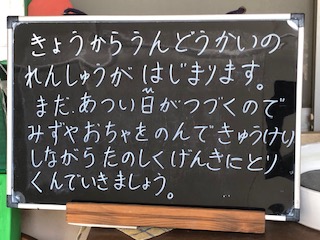 今日から運動会の練習となります。たくさん汗もかきますので、大きめの水筒を持たせてください。