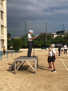 今日の児童朝会で絵画展で賞を受けた児童を表彰しました。