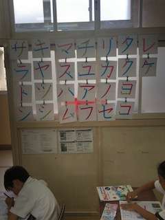 カタカナの学習も順調に進んでいます。教室の窓側には、習ったカタカナが貼られています。